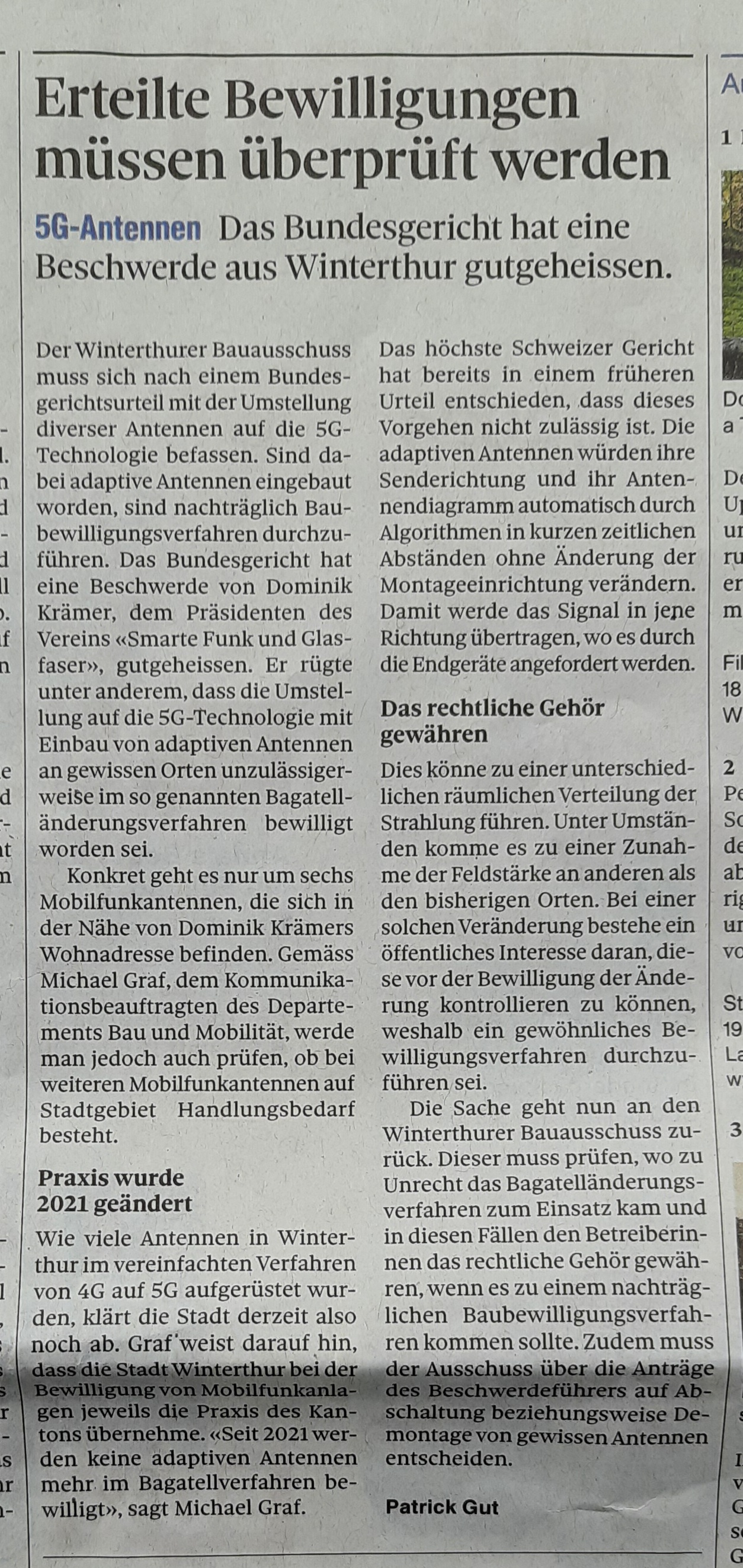 Den 5G-Bagatelländerungs-Bundesgerichtserfolg von Mitte Oktober 2024, den noch aktuelleren 5G-Brühlbergturm-Verwaltungsgerichtserfolg vom diesjährigen März, wie auch den Erfolg mit – ebenfalls nationaler Tragweite -, wie er im Februar 2021 erzielt werden konnte, verdanken wir der finanziellen Unterstützung unserer Gönnerinnen und Gönner bzw. den Spenden vieler besorgter Menschen, sowie der ehrenamtlichen Arbeit unserer Vereinsmitglieder. Um unsere Interessen weiterhin mit Nachdruck vertreten zu können, sind wir auch in Zukunft auf finanziellen sowie personellen Beistand angewiesen. Sollte Sie sich angesprochen fühlen, schreiben Sie uns bitte eine Email an: smarter@mail.ch, SMS, oder rufen Sie uns an unter 078 687 37 78.